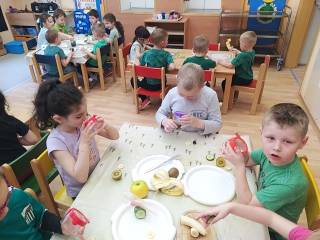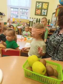 Děti přinesly do školky něco, co je z jablíčka nebo samotné jablíčko. Přišly v červeném oblečení nebo jablíčkovém doplňku.